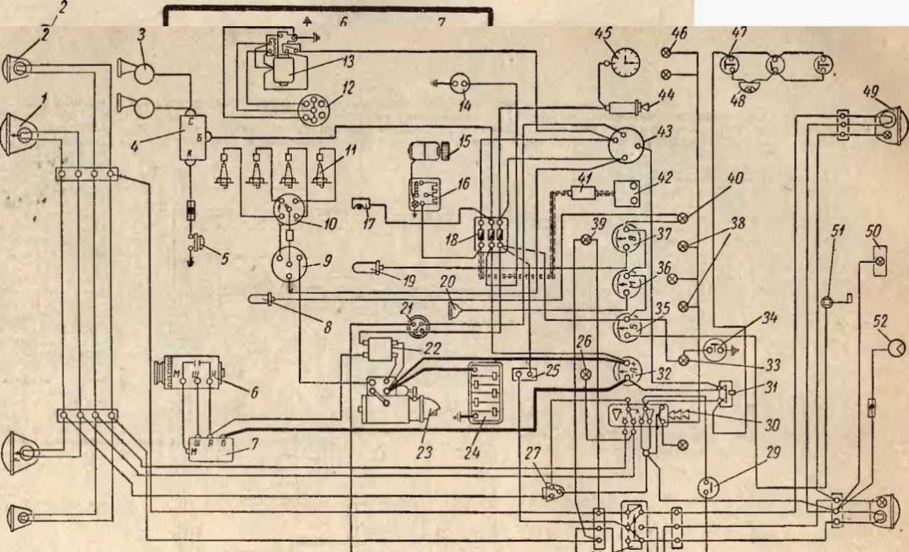 | 7 – распределитель зажигания | 54 – вольтметр |