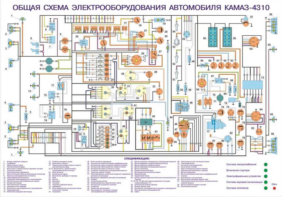 Цветная электрическая схема электрооборудования ЗИЛ 131 и 130 с описанием проводов