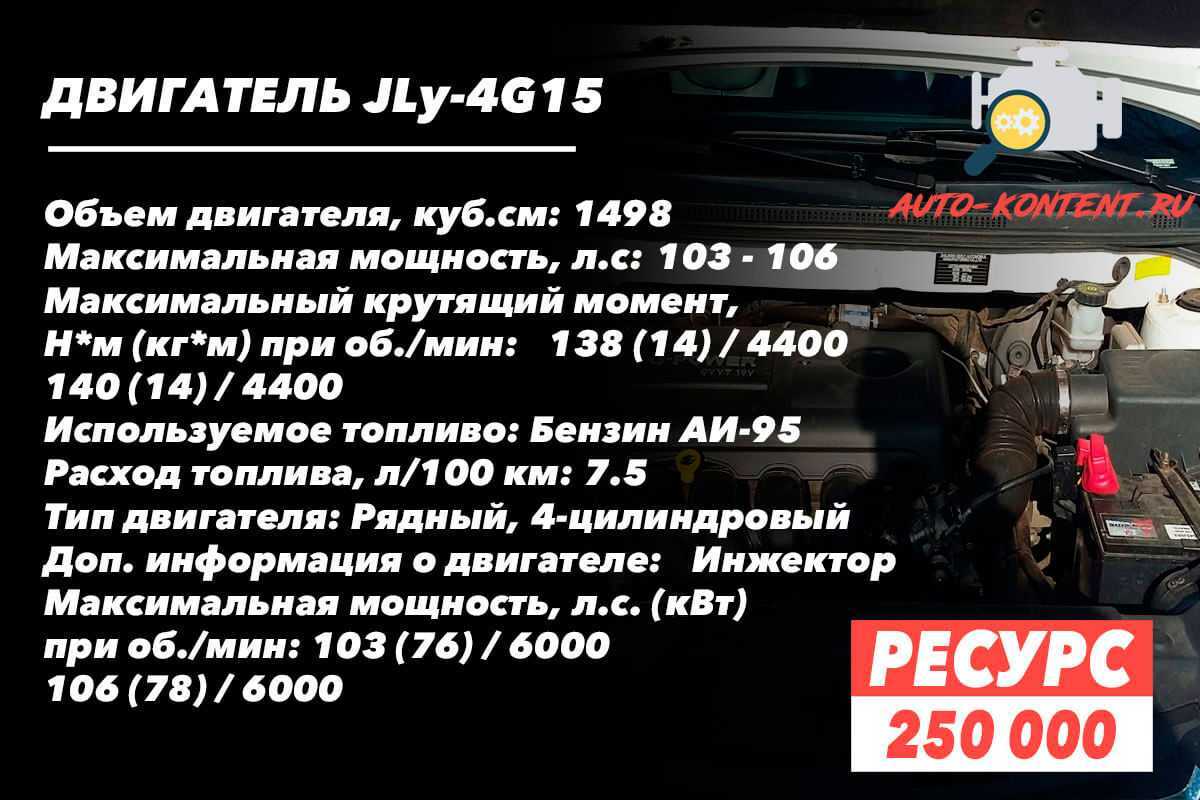Корни консервативного атмосферного 1.5-литрового мотора уходят ли то в концерн Mitsubishi, то ли в Toyota. По своей конструкции сильно напоминает тойотовский силовой агрегат, но по маркировки его можно спутать со старыми силовыми установками Mitsubishi. По своей конструкции это рядная 4-цилиндровая алюминиевая «железяка» с накрытой сверху 16-клапанной головкой. Движок оснащен водяной системой охлаждения. Компоновка газораспределительного механизма обычная – один вал сверху, второй снизу. Помимо этого JLy-4G15 отличается наличием системы изменения фаз газораспределения CVVT и многоточечным впрыском топлива. Цилиндры расточены под 77.8 мм, ход поршня составляет 78.3 мм. В совокупности такая архитектура образует 1498 куб. см рабочего объема.