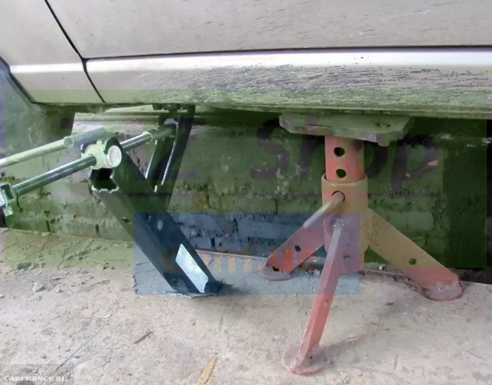 - Обматываем редуктор тросом и создаем натяг со второй лебедкой. Как вариант, можно заменить упор ниже контрольной точки. То есть нужно сделать так, чтобы редуктор не провалился в яму со свистом при откручивании основных крепежных болтов.