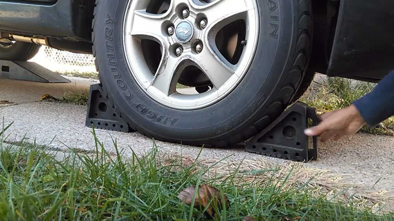 Поднимите переднюю часть Hyundai и установите подставки под домкрат, чтобы закрепить его.Лучшим и более безопасным способом поднять свой Hyundai было бы использование автомобильных рамп. Поместите противооткатные упоры на задние колеса, чтобы ваш Hyundai не катился назад.