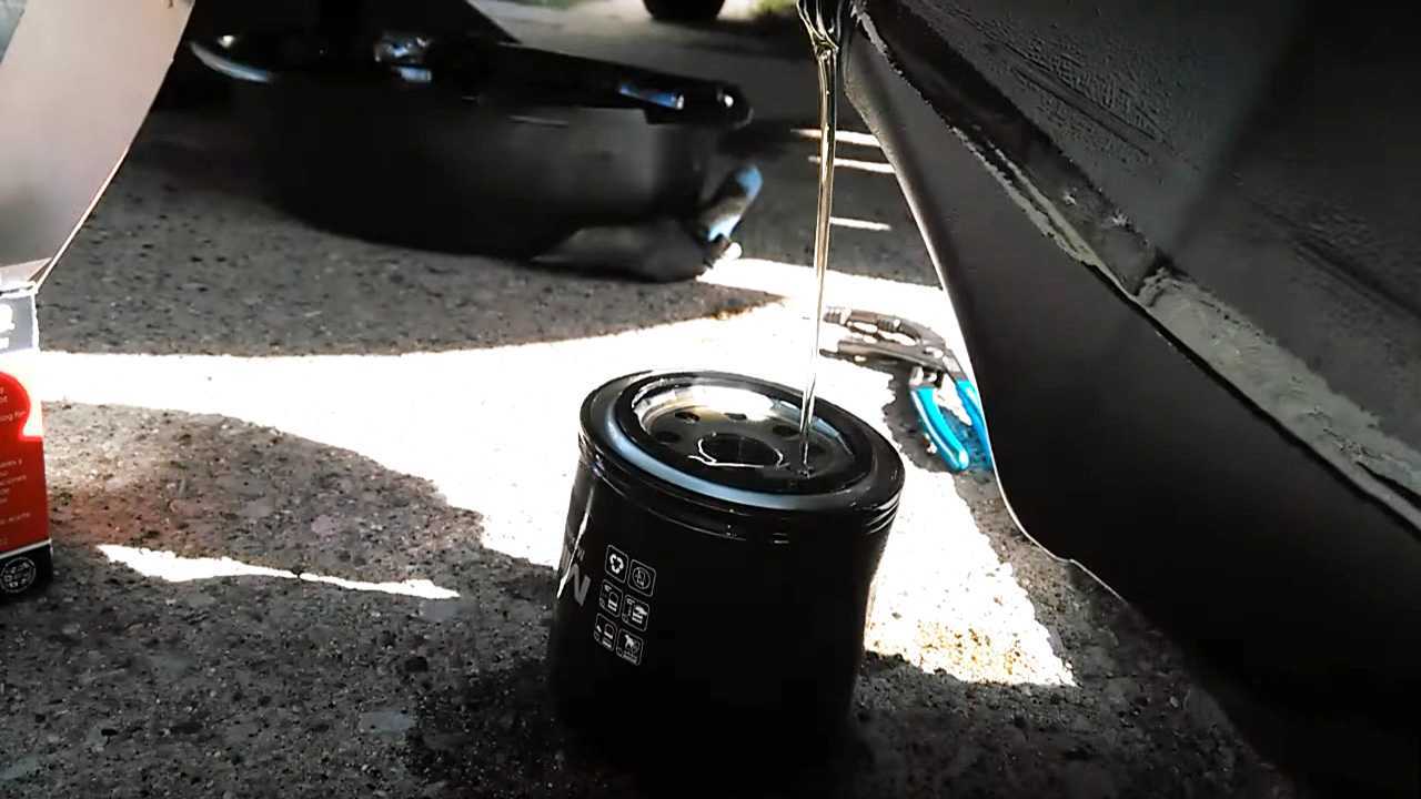15. Заливаем немного масла в фильтр. Так же легонько смазываем резиновое уплотнительное кольцо на фильтре маслом.
