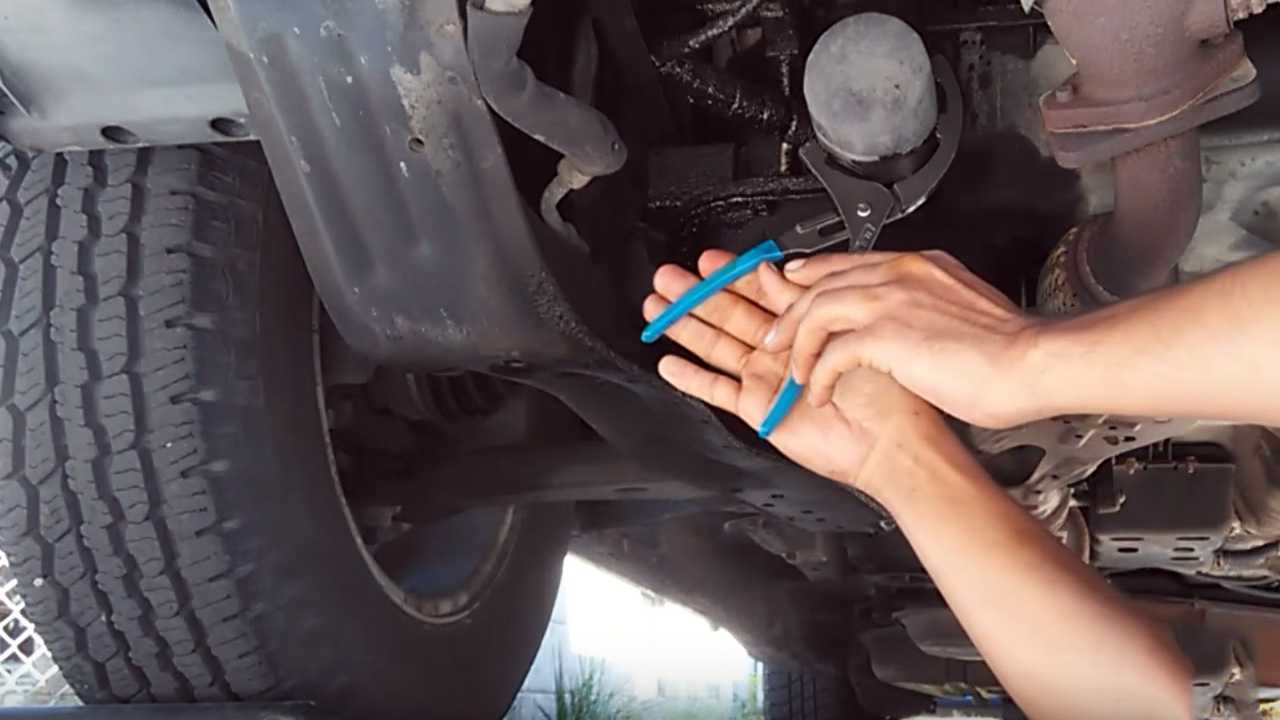 - Снимите масляный фильтр с помощью ключа для масляного фильтра. Вы можете удалить масляный фильтр, повернув его против часовой стрелки.