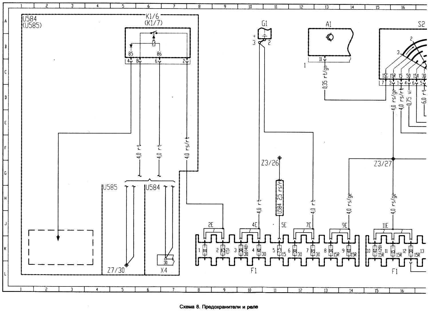 Большинство цепей питания электрооборудования немецкого седана защищено предохранителями. Фары, электродвигатели вентиляторов, топливный насос и другие мощные потребители тока подключены через реле. Защитные элементы установлены в монтажных блоках, которые находятся под капотом, в салоне и в багажнике.