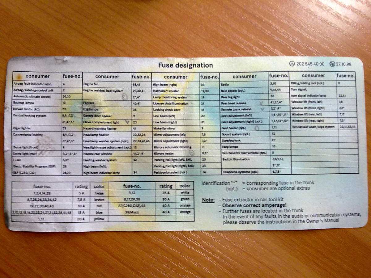 - Схема блока предохранителей Mercedes Classe C. — Mercedes C-Класс (W)