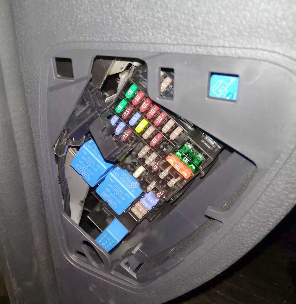 Монтажный блок находится с левой стороны, рядом с аккумулятором и закрыт пластиковой крышкой.