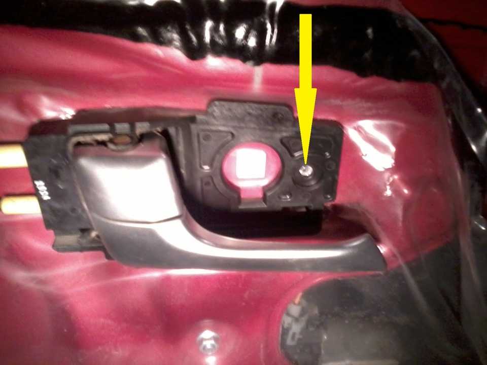 У второго разъема фиксатор такой же. Вот теперь все, обшивку можно убирать.Если дальше вам надо снять внутреннюю ручку, пара фото про нее. Откручиваете саморез (указан стрелкой