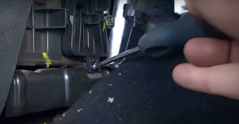 После снятия обшивки откроется доступ к блоку предохранителей. Советуем отсоединить два крайних левых штекера снизу. Это поможет вынуть картридж. Некоторые водители полностью откручивают бардачок. Но это лишняя трата времени. При достаточной сноровке вытащить фильтрующий элемент легко. Слева будет видна пластиковая крышка. Ее держит саморез под шестигранник. Его надо выкрутить отверткой Torx T15. Бывает, что вместо заводского болта в качестве крепежа используют шуруп с крестовой головкой. Вот где находится саморез: