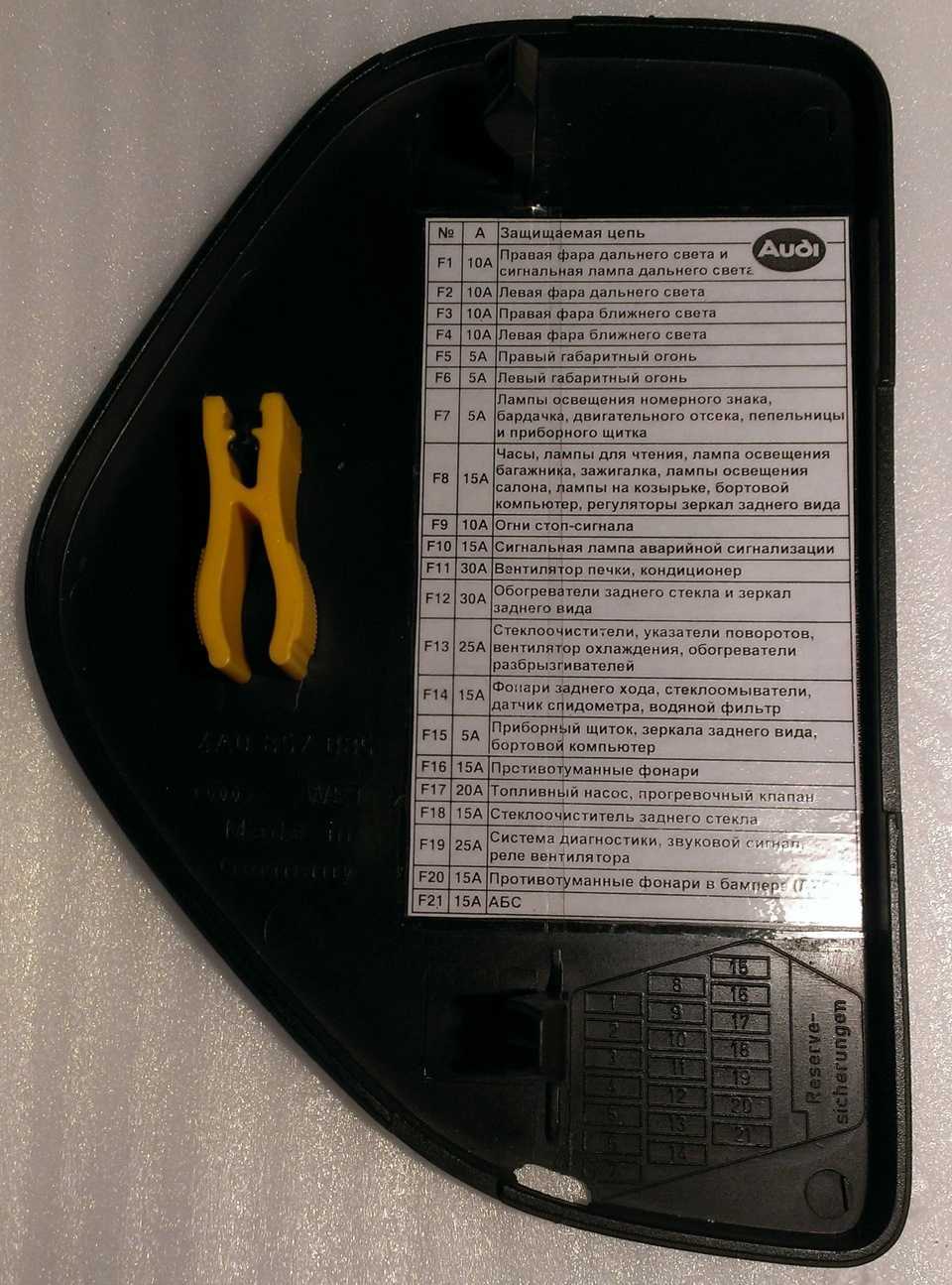 | 21 | Предохранитель заднего прикуривателя Ауди 100 | 25 |