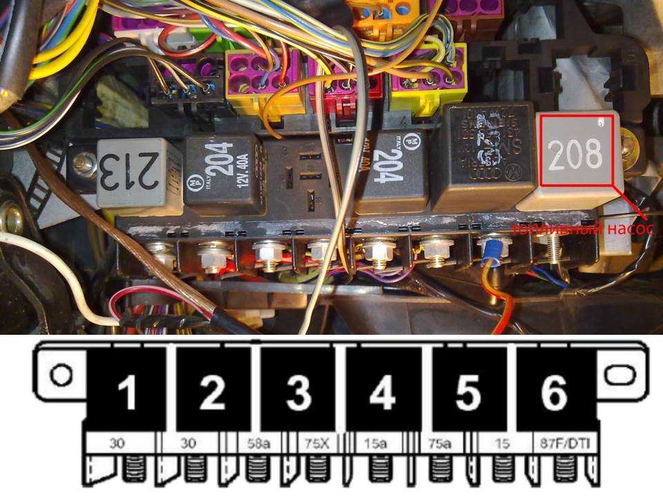 | – реле включения топливного насоса на автомобилях с 4- или 5-цилиндровыми двигателями без ограничителя частоты вращения | ||