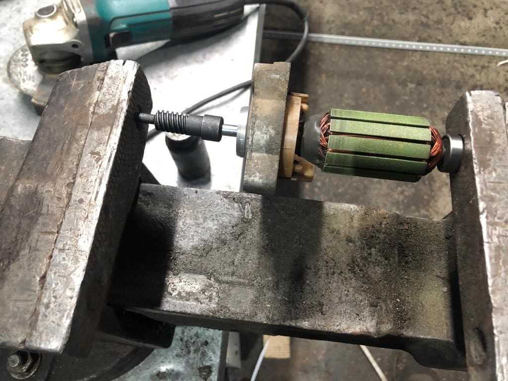 - Спиливаем вал болгаркой примерно в 1-2 мм от конца резьбы