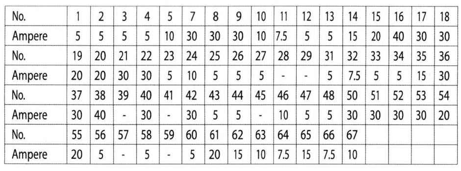 | 48 | Омыватель фар, управление задним стеклоочистителем и омыватель фар | 30А |