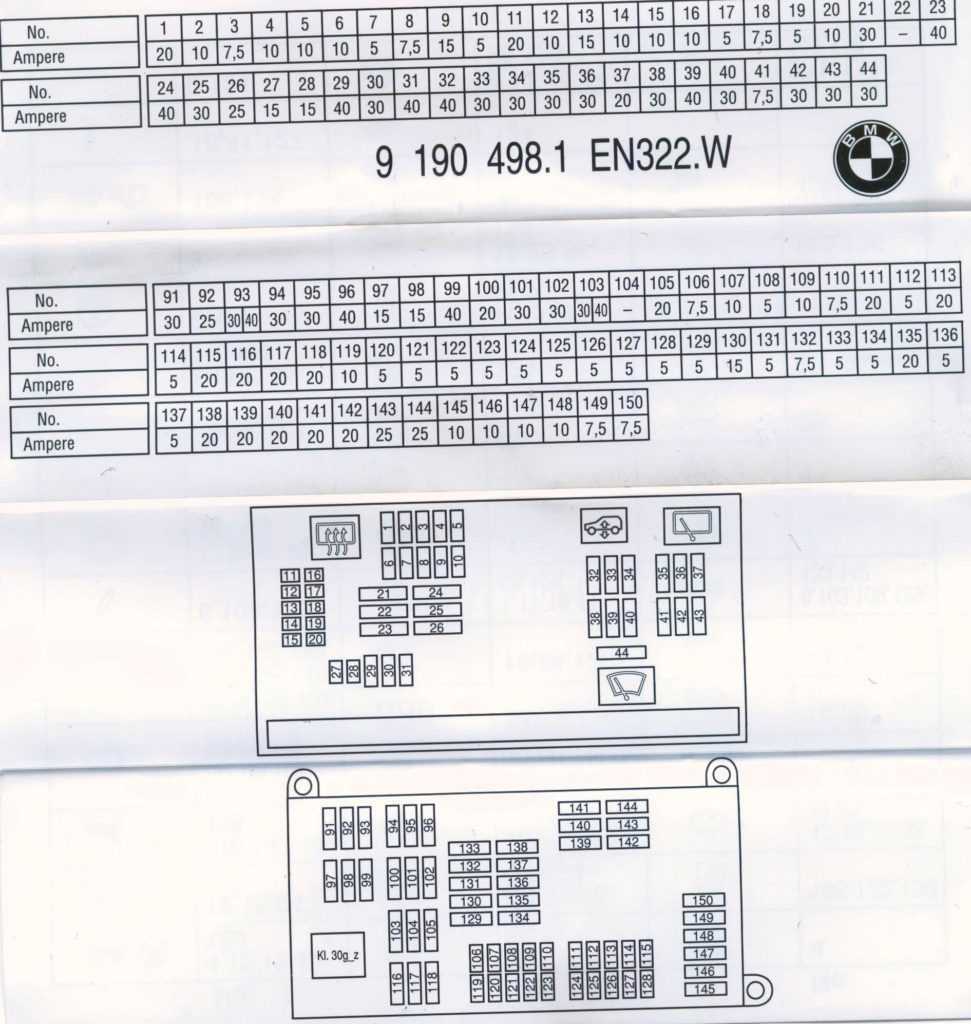 Расположение и назначение предохранителей и реле BMW 3 Series 316i, 316g, 318i, 318is, 318ti, 318tds, 320i, 323i, 323ti, 325i, 325td, 325tds, 328i, M3 (E36; 1990, 1991, 1992, 1993, 1994, 1995, 1996, 1997, 1998, 1999, 2000).