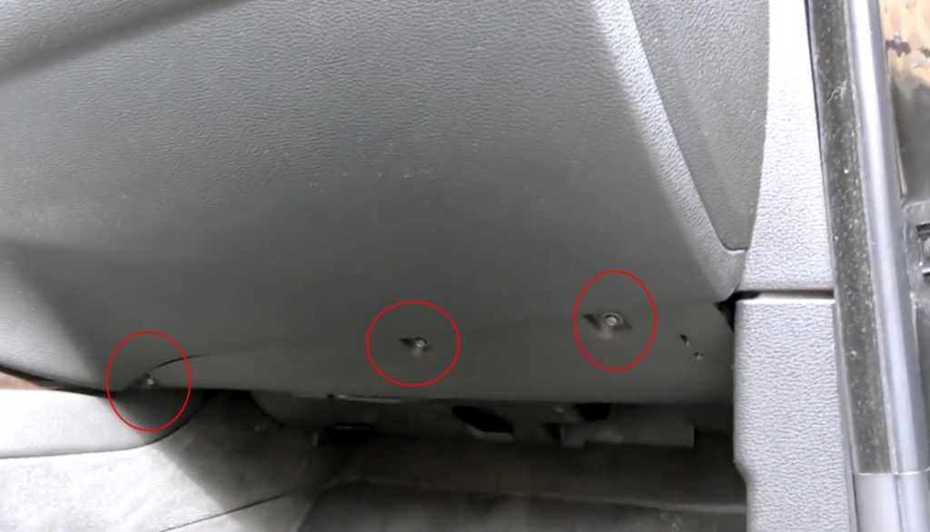 Он располагается с правой стороны, в ногах у переднего пассажира. Для доступа опускаемся под бардачок и откручиваем три винта.