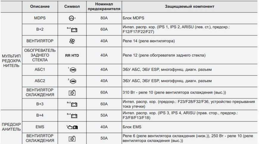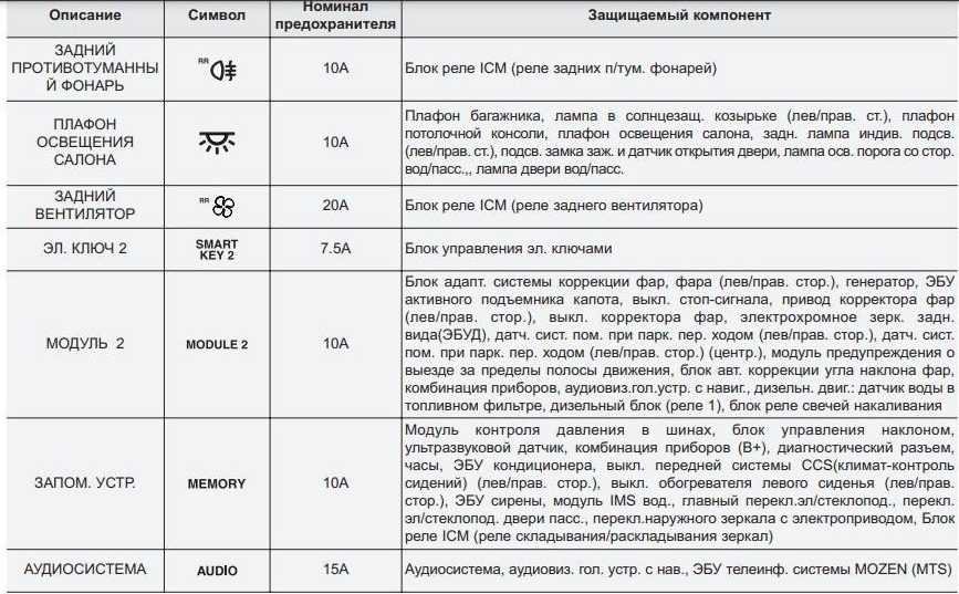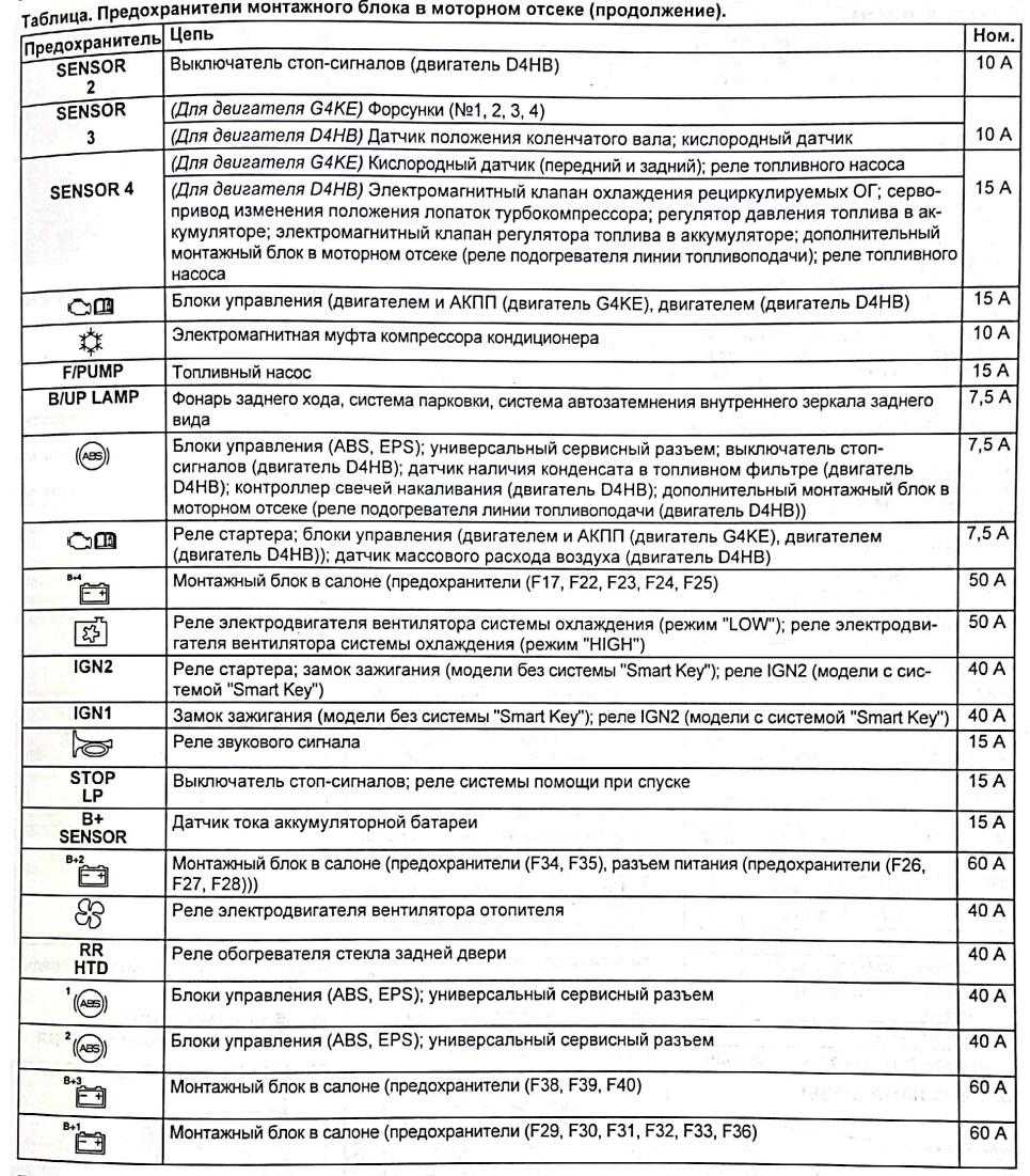 Расшифровка схемы плавких вставок под капотом