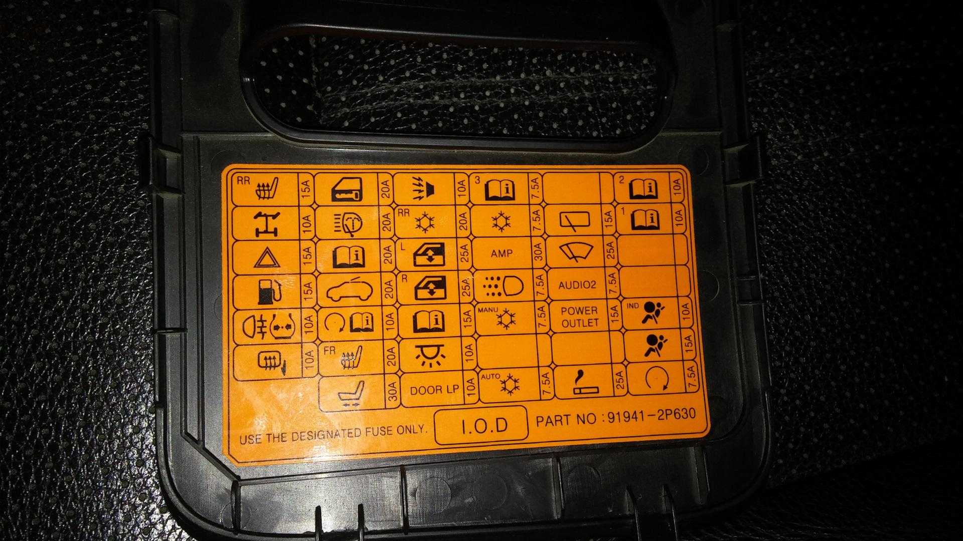 Предохранители Киа Соренто 2 до рестайлинга (2009-2012)