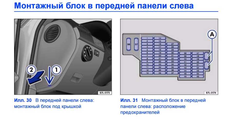 Расположение предохранителей Туарег предохранитель вебасто монтажном блоке есть место для двух запасных предохранителей А рис. Примечание По бокам передней панели размещены блоки плавких предохранителей.