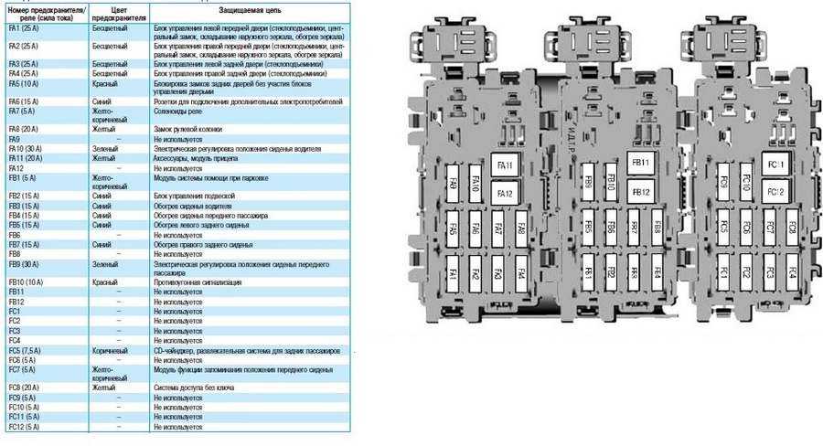 | F20 (7,5 А) | Коричневый | Панель приборов, таймер отключения, фонарь освещения номерного знака |