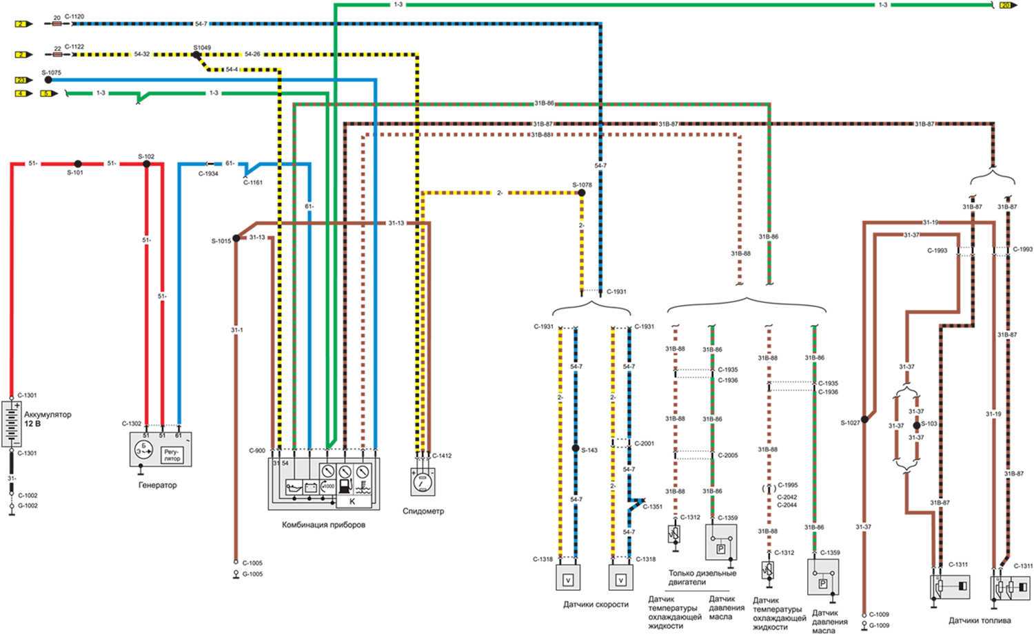 | Черный | 20 | Топливный насос системы впрыска топлива |