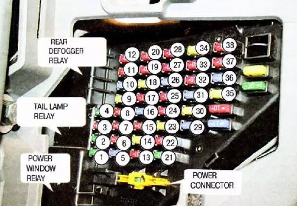 Нажмите на крышку панели плавких предохранителей и снимите. Проверьте извлеченный предохранитель.