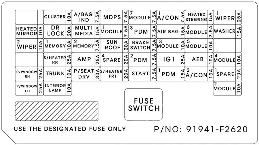 Помните, что для замены предохранителя важно использовать предохранитель с тем же типом и номиналом, чтобы избежать повреждения электрических систем вашего автомобиля Hyundai Elantra