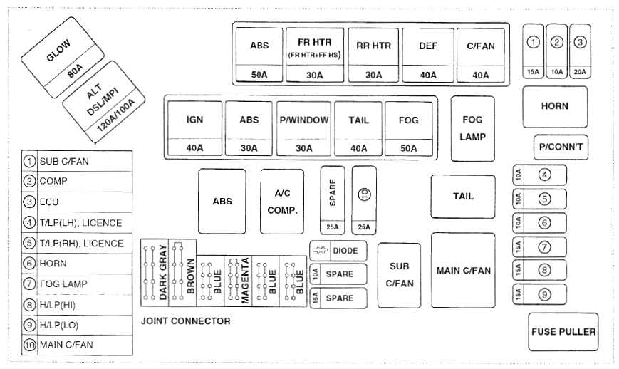 В моторном отсеке стоят предохранители, подключенные к такому электрооборудованию: