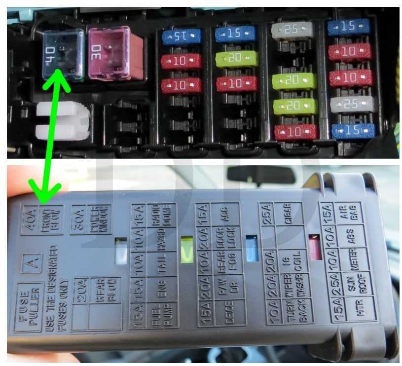 На Hyundai Grand Starex применяют предохранители флажкового типа форматов мини для большинства электроприборов и макси для мощных потребителей.