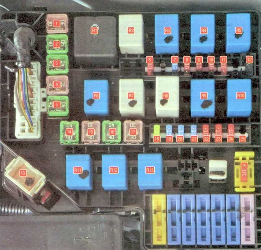 В моторном отсеке машин с бензиновым двигателем стоят реле и предохранители, работающие со следующим оборудованием:
