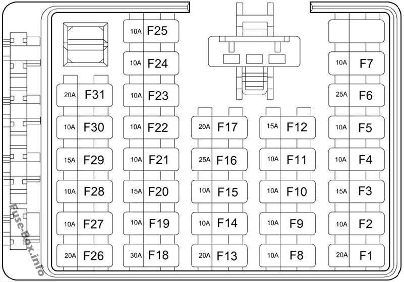 | F31 | 20A Front wiper motor, wiper relay, washer motor |
