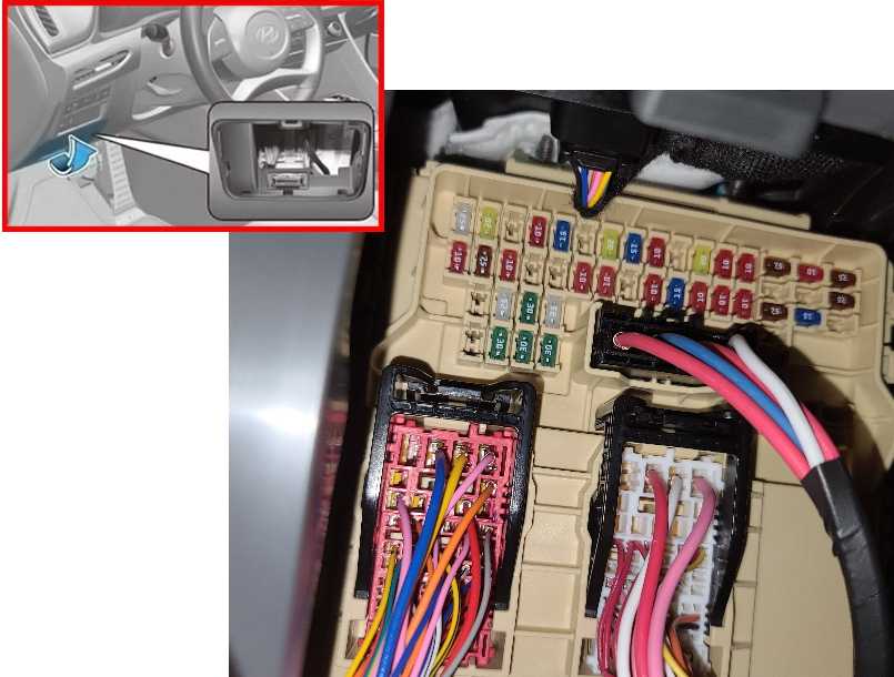 Провода CAN2 подключаются слева от рулевой колонки, в разъеме с тыльной стороны блока предохранителей.