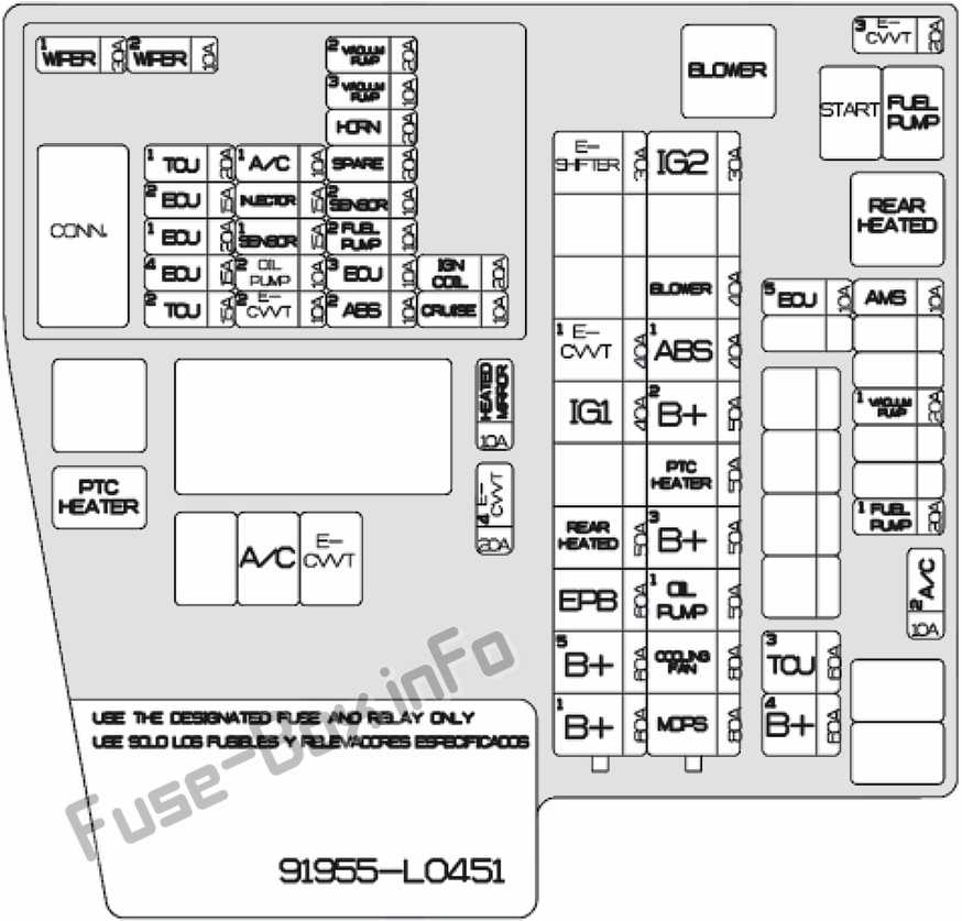 | E-CVVT1 | 40A | G4FN: CVVD ACTUATOR; E/R Junction Block (E-CVVT Relay)  |