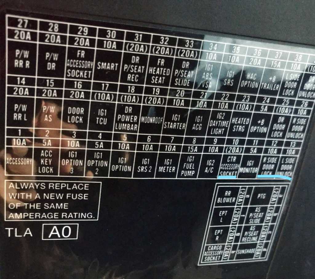 Процедура аналогична и для блока, располагающегося в салоне. Находим его и нажимаем на защелку, чтобы снять крышку. На ней также будет схема расположения деталей. Заменяем поврежденную запчасть, предварительно достав перегоревшую, и закрываем крышку.