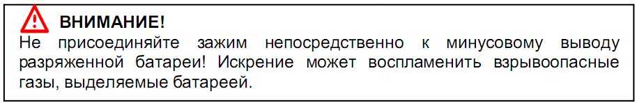 Место присоединения зажима должно находиться как можно дальше от разряженной батареи.