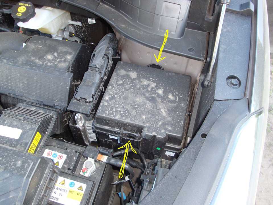 Под капотом монтажный блок находится перед аккумулятором