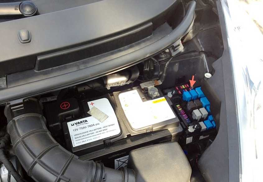 Подкапотный блок поместили у аккумулятора.