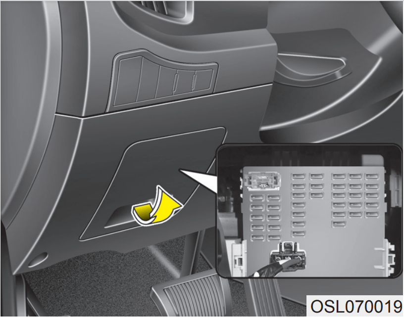 Где располагаются блоки предохранителей и реле на КИА Спортейдж 3-го поколения 2012–2013 годов