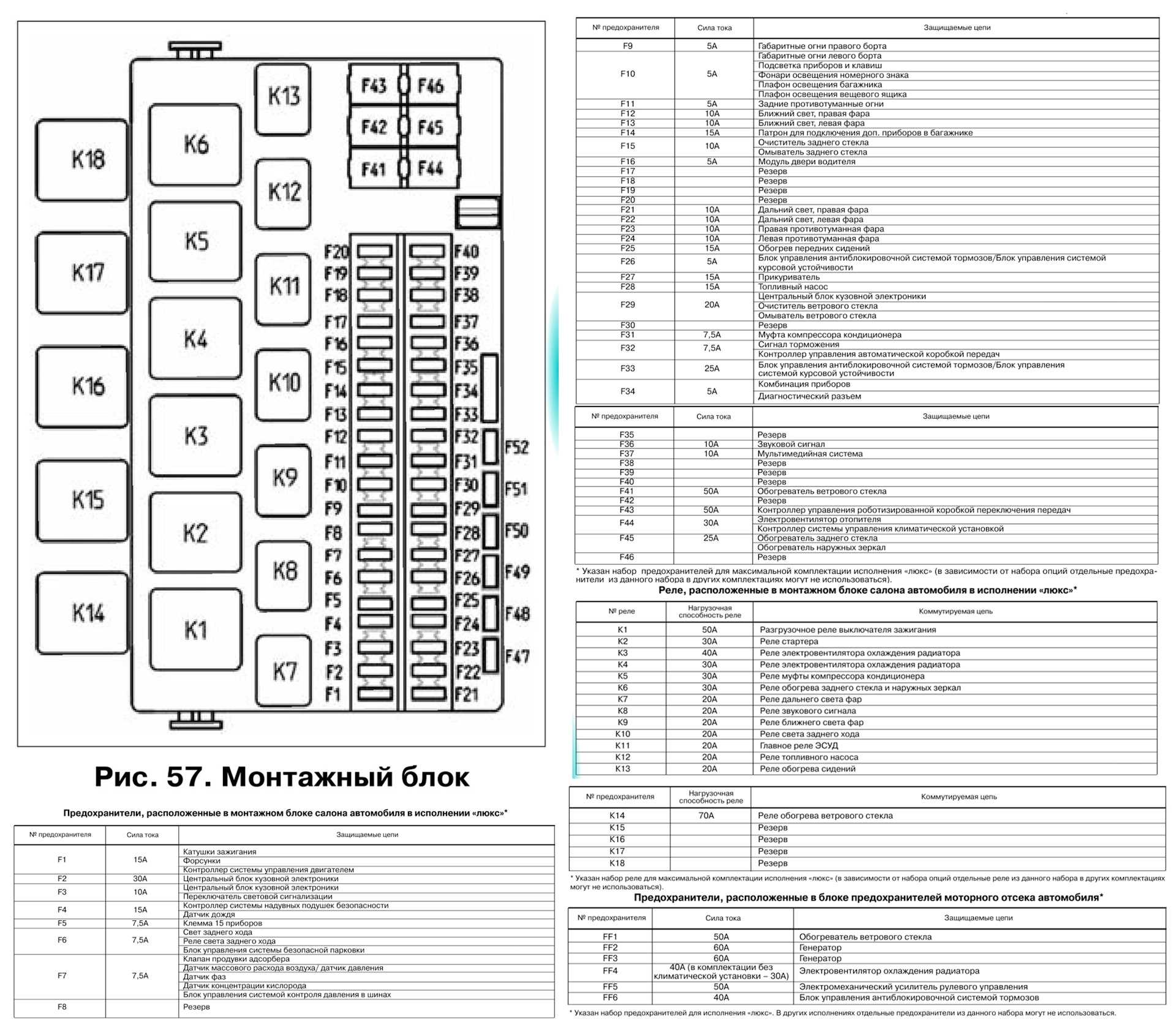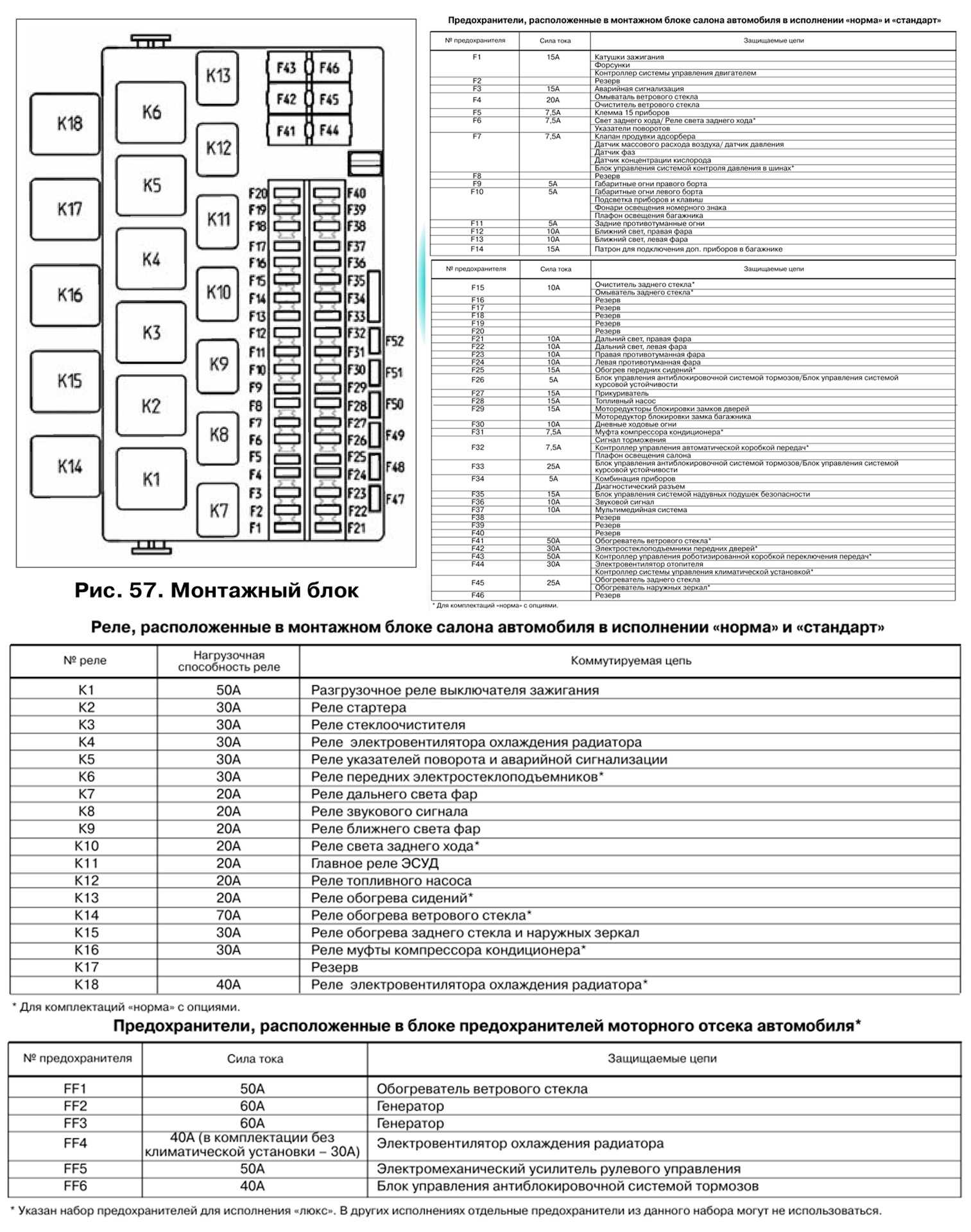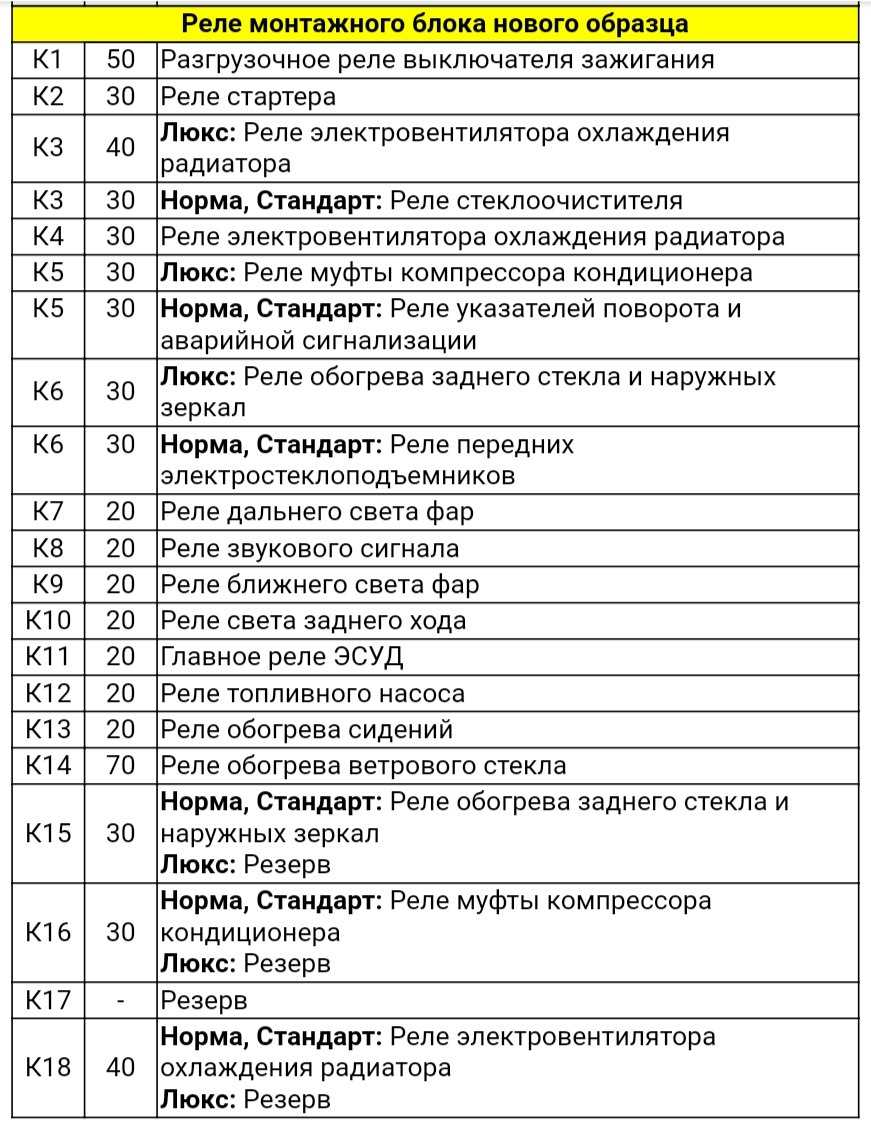Монтажный блок одинаков для всех комплектаций автомобиля: стандарт, норма, люкс. В зависимости от комплектации и оснащённости автомобиля в блоке предохранителя могут отсутствовать некоторые реле.