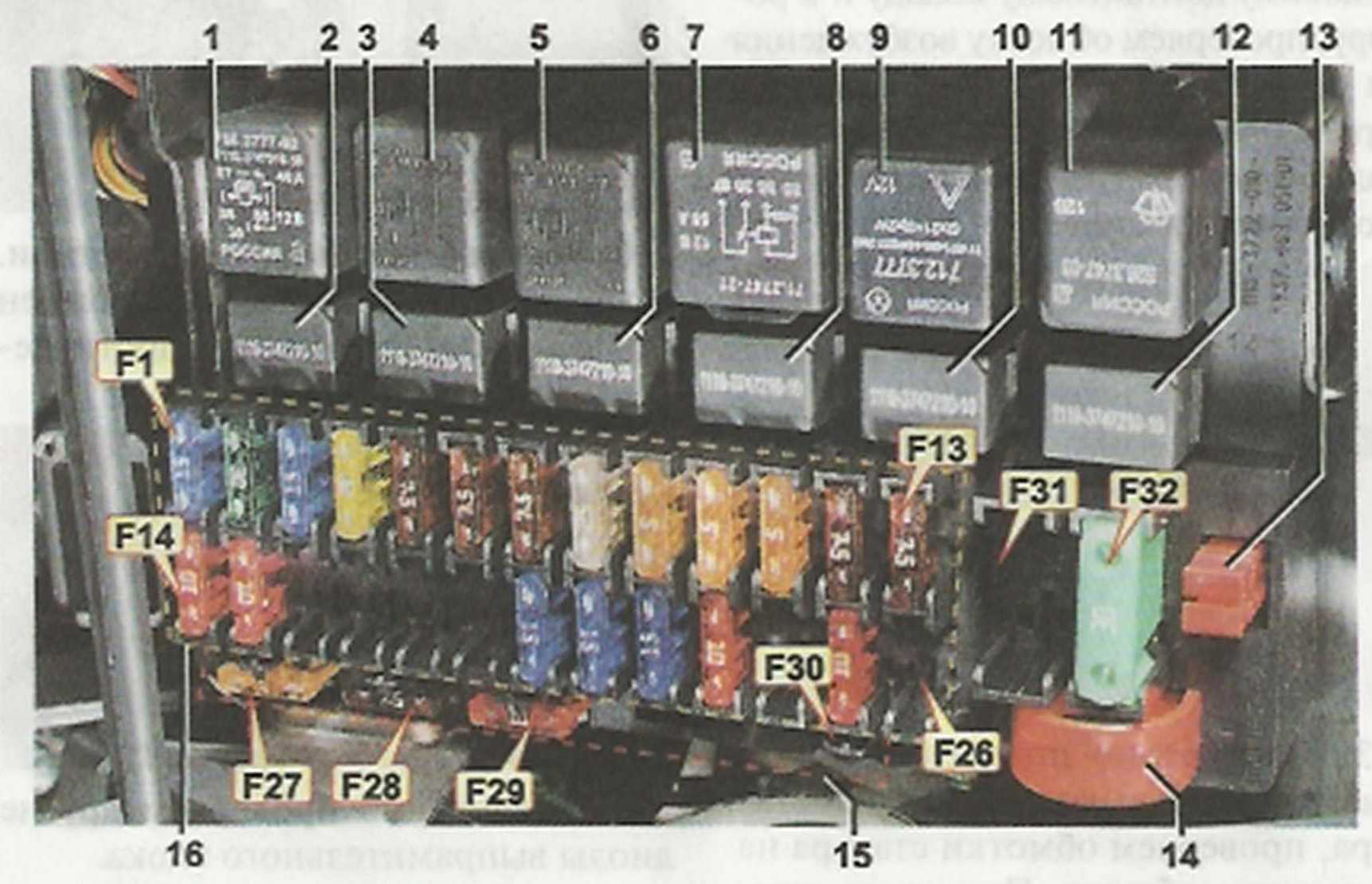 На них находятся предохранители и реле для нескольких типов электрооборудования: