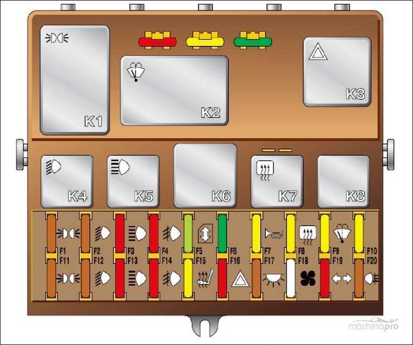 - К2 – отвечает за работоспособность дворников ветрового стекла;