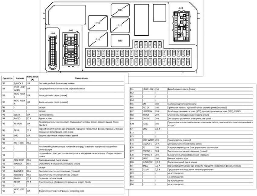 Предохранители и реле Mazda 3 (BK), 2003 — 2009
