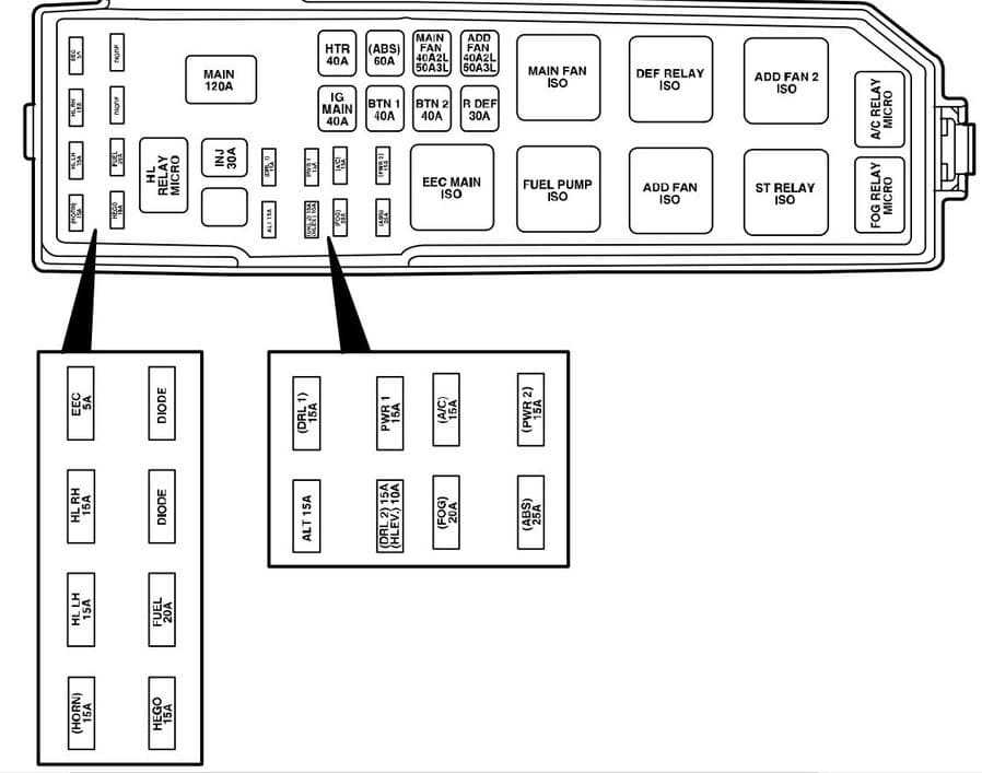 | 21 | 40A Horn, auxiliary brake light, instrument cluster, central locking and power seats |