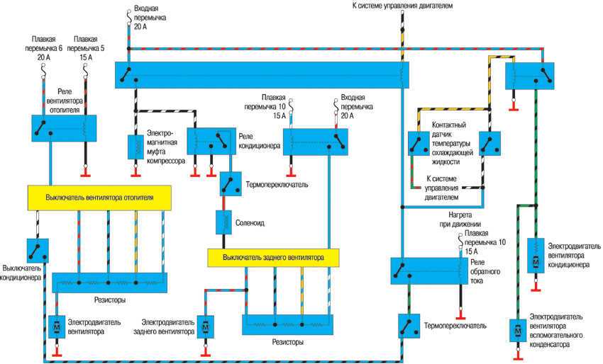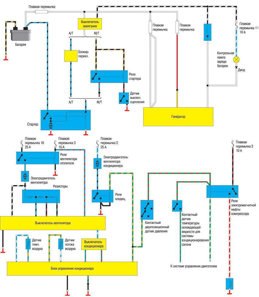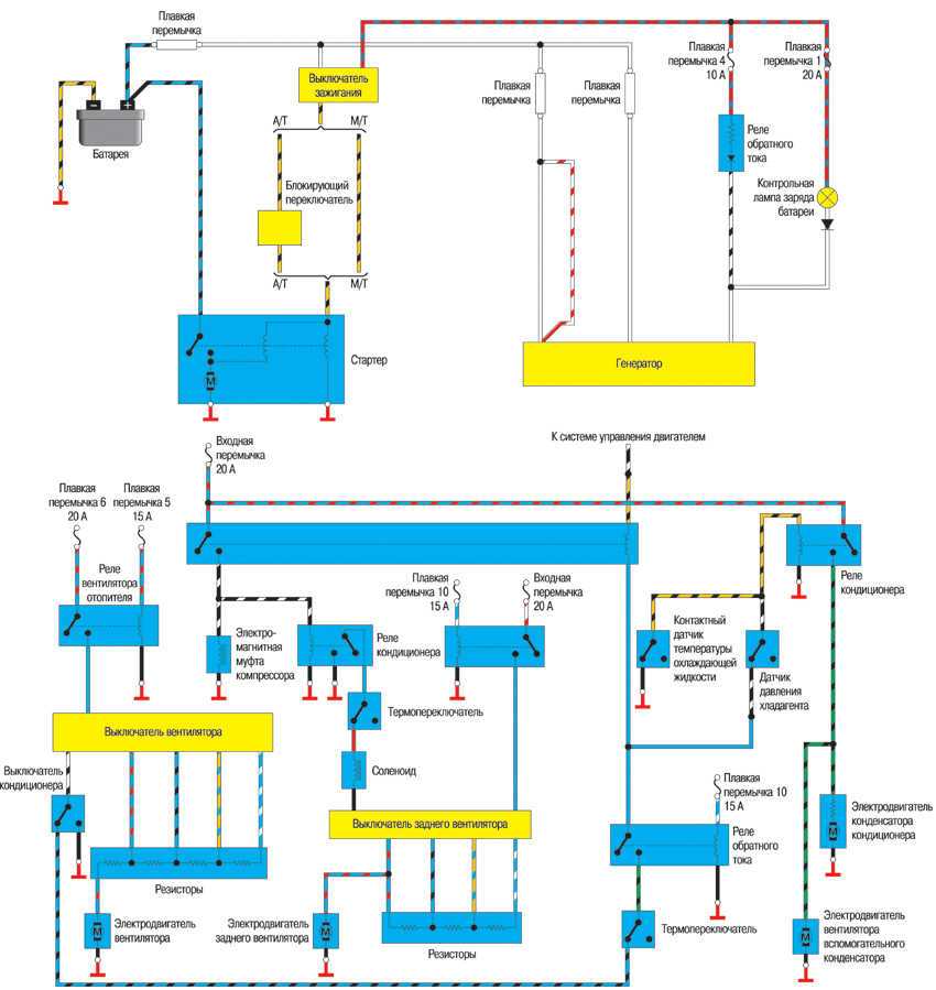 В моторном отсеке можно найти плавкие вставки, подключенные к такому оборудованию: