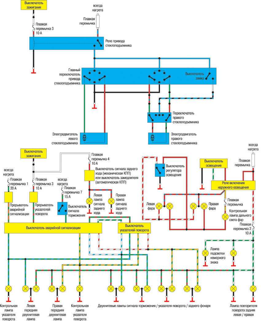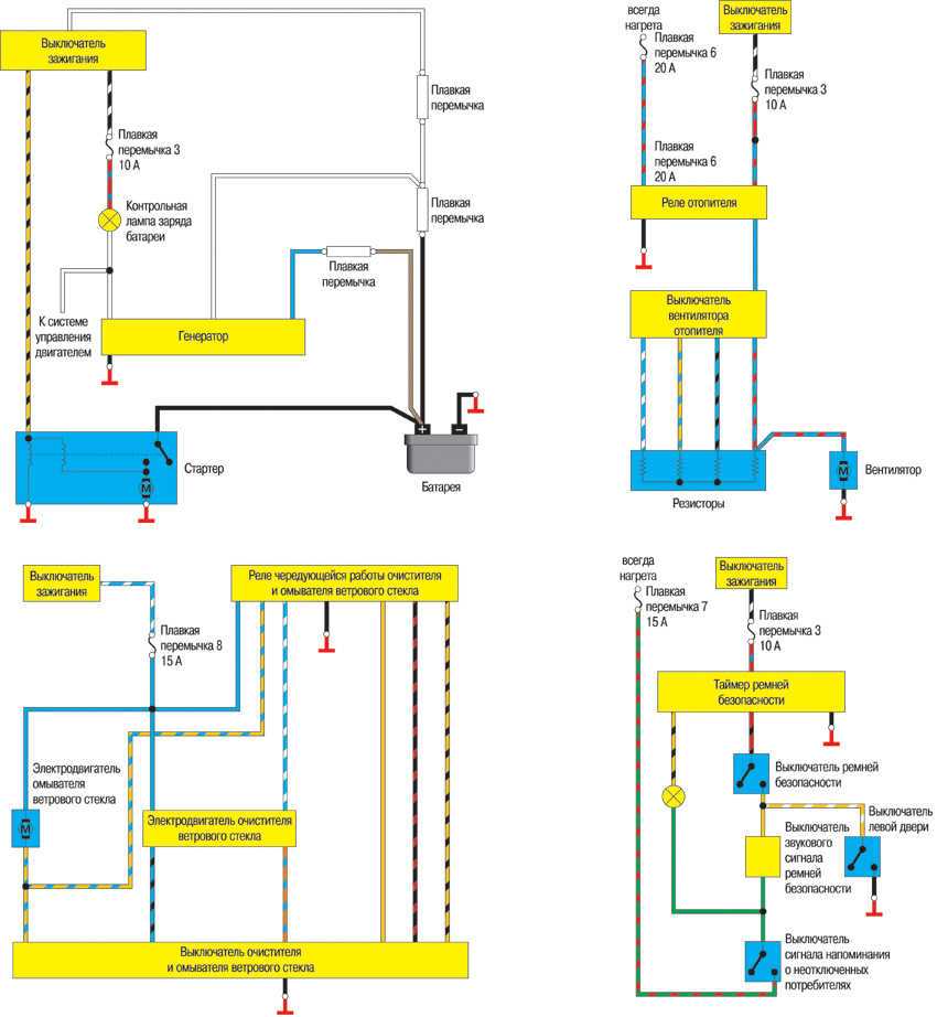 На панели под приборной доской имеются перемычки, подключенные к следующим электроприборам:
