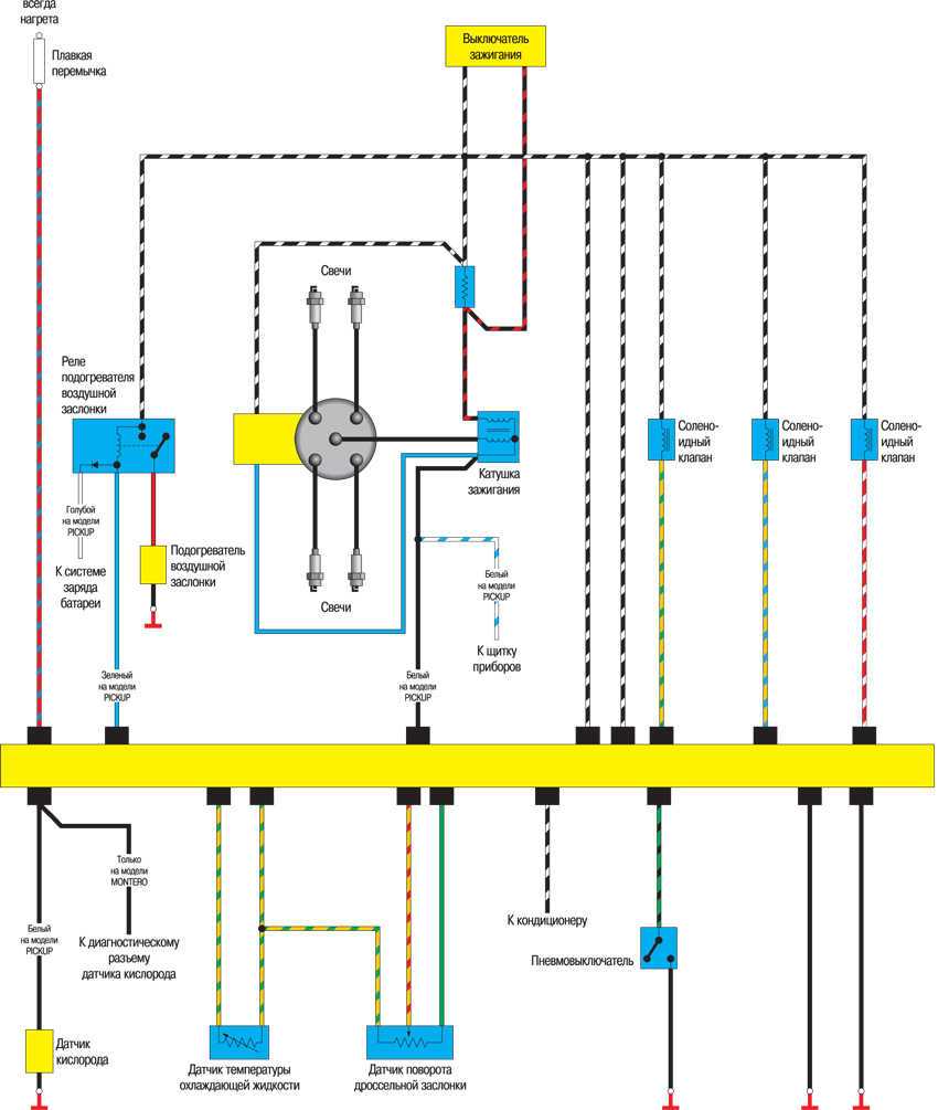 Схемы электрооборудования автомобилей Митсубиши Паджеро 1983-1998г. (Mitsubishi Pajero 1983-1998)