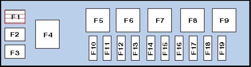 | F19 | (20А) Электродвигатель очистителя лобового стекла, реле электродвигателя очистителя лобового стекла |