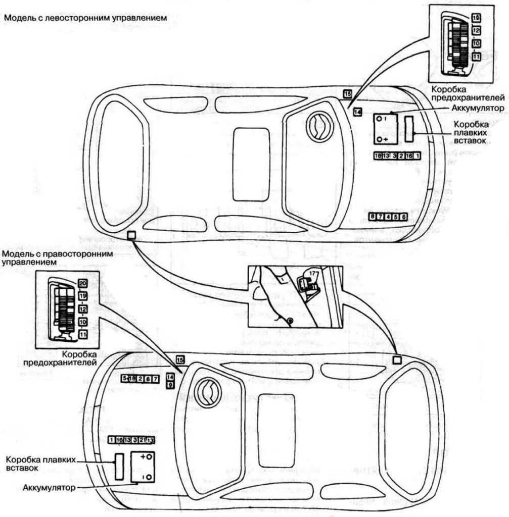 - Реле топливного насоса (под накладкой проема передней двери со стороны водителя)