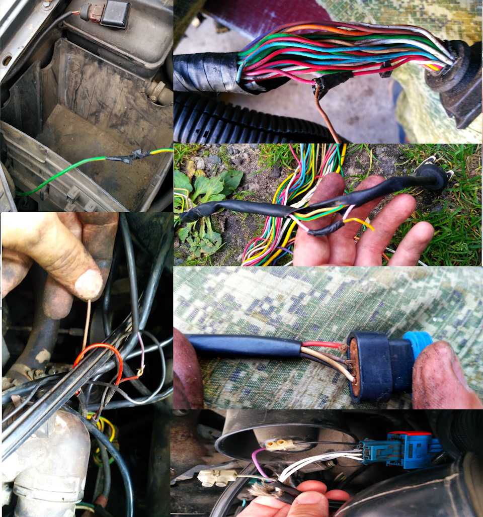 (П.С. очень многие связи проводов основаны на скрутке, а не спайке. Проблемным учаском было соединение датчика лямбды, форсунок, тахометра.)