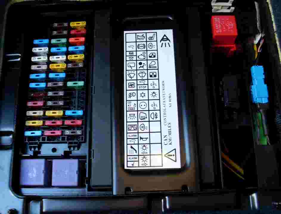 В салоне под ковриков подлокотника вещевого ящика, находится предохранитель отключения потребителей электроэнергии: 20А – Диагностический разъем, аудиосистема, ЭБУ, Центральный коммуникационный блок, охранная сигнализация.