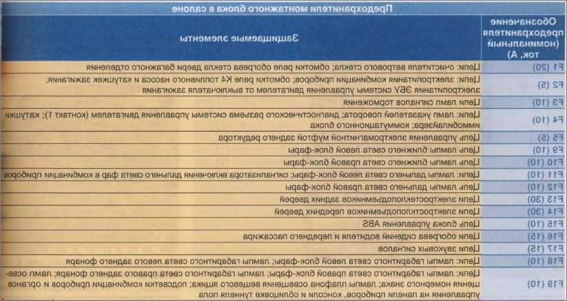 В моторном отсеке располагаются плавкие вставки для защиты следующего оборудования: