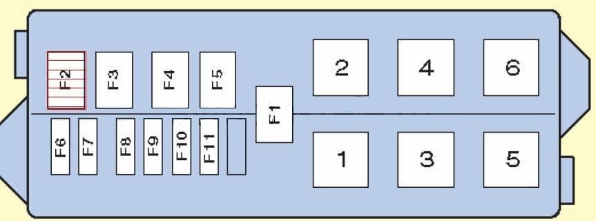 | F2 | (60А) Распределение питания аккумуляторной батареи |